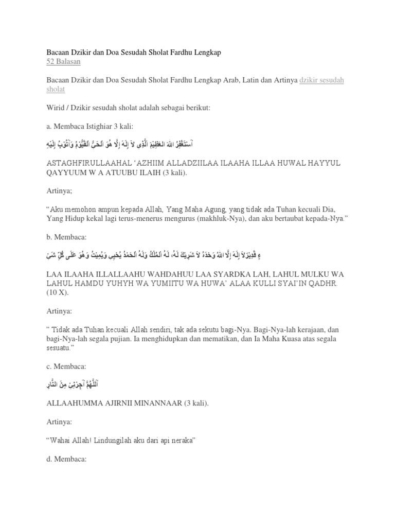 Bacaan Doa Setelah Sholat Wajib Lengkap Arab Latin Dan Artinya Pdf